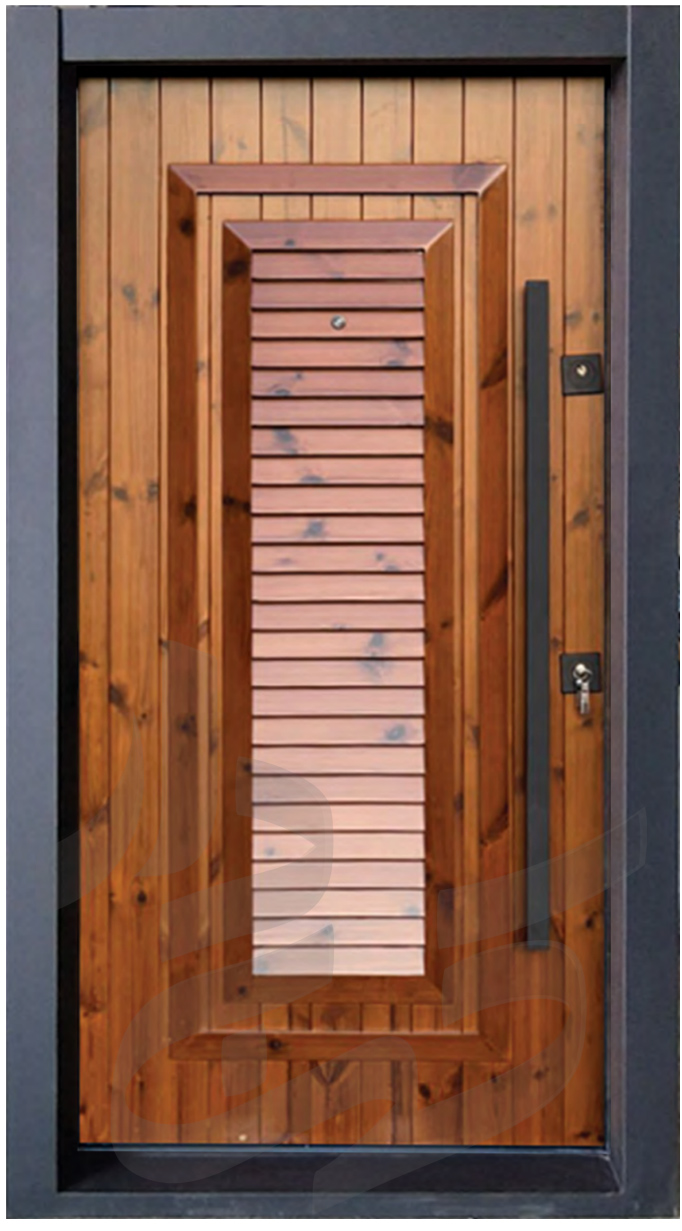 درب ضد سرقت ترمو وود ، مدل KS12 کهن دار ساخت رشت | ضد آب مناسب برای فضاهای باز و ورودی ساختمان به واسطه حضور چوب ترمو وود با کیفیت و مقاوم در برابر آب ، رطوبت و فرسایش.