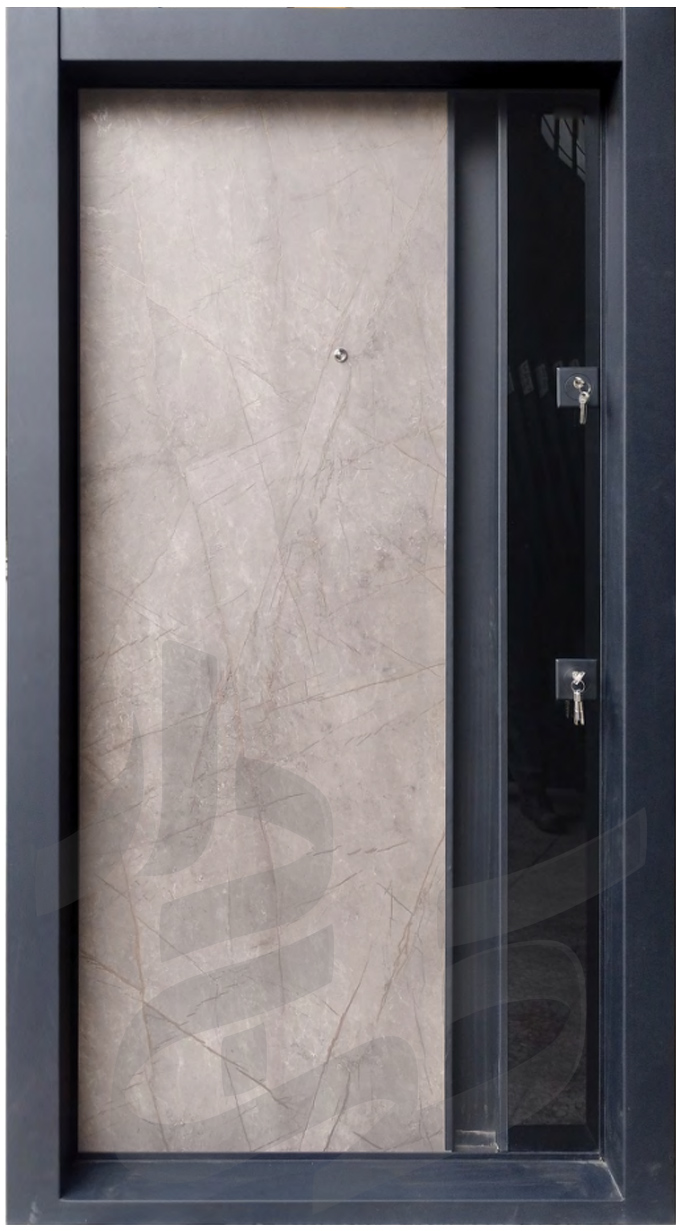 درب ضد سرقت با رویه سنگ مصنوعی SPL و شیشه سکوریت ، مدل KL03 کهن دار ساخت رشت | مناسب برای فضاهای باز و ورودی ساختمان به واسطه حضور سنگ مصنوعی SPL و شیشه سکوریت مقاوم در برابر رطوبت و آب.