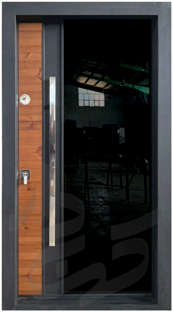 درب ضدسرقت شیشه سکوریت و ترمو وود مدل KS14 ضد آب مناسب فضای باز ساخت رشت